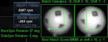 The SCX measures ball spin by shifting the markings from 2 adjacent (in flight) ball images in both the x and y directions and obtaining a best match.