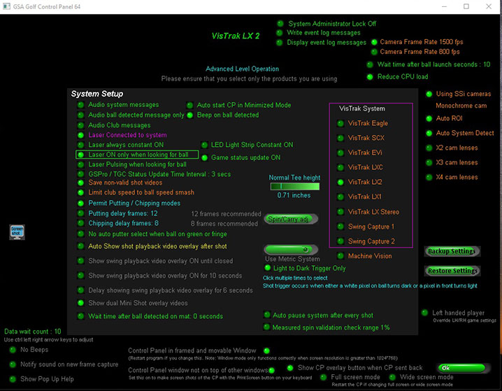 Go to the Setup panel and select Vistrak LX2