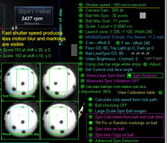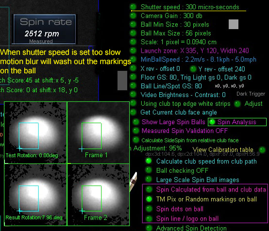 measured ball spin will not be possible due to motion blur.