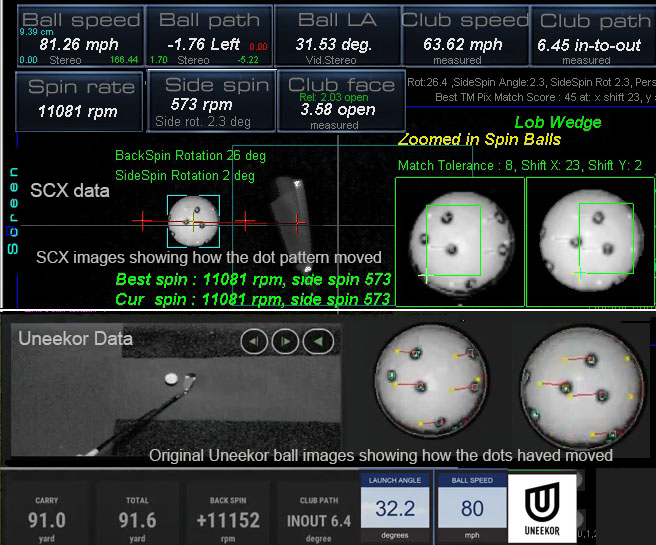 The SCX measures ball spin by shifting the markings from 2 adjacent (in flight) ball images in both the x and y directions and obtaining a best match.