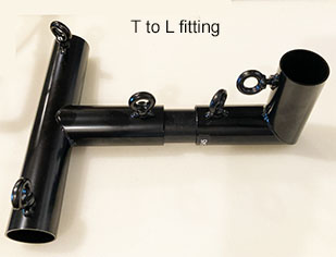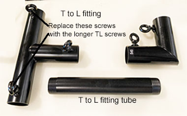 The frame comes with a number of L and T fittings and replacement screws for the T to flex rod fittings