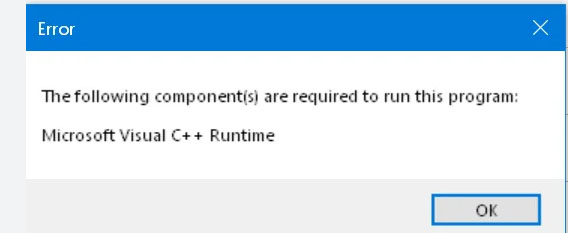 If you see an error message like the above, then that means your PC doesn't have the VC Runtime components installed.
