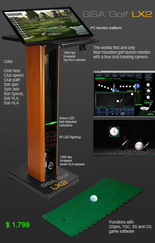 The GSA Golf LX functions with E6, GS Pro, CG3 and TGC (and more) game software packages